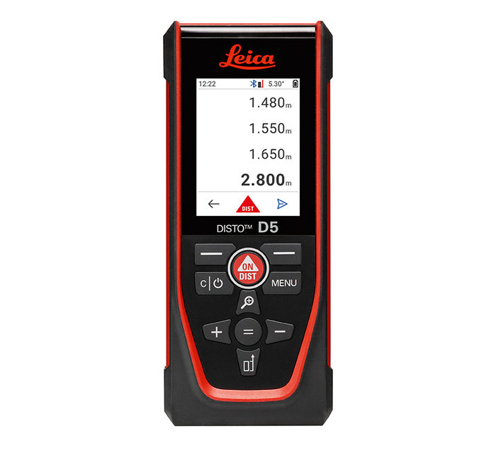 Your powerful partner for outdoors. First laser distance meter with digital Pointfinder (4x zoom), large 2.4“ color display and ± 45°tilt sensor is now available! The Leica DISTO™ D5 is designed with many functions and features to make measuring easier, particularly when you are working outdoors.