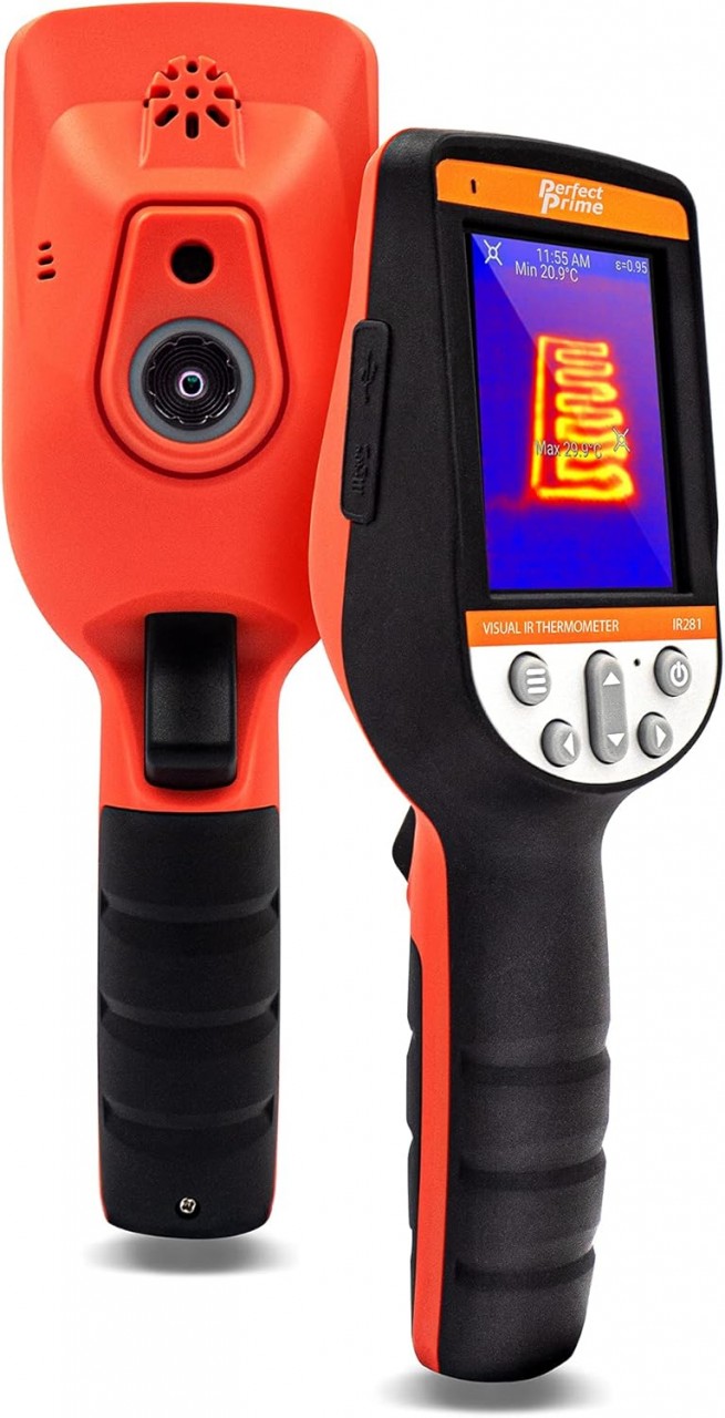 The thermal imager is Safe & Durable. IP65. 2m drop test. Image alarm/LED alarm/buzzer alarm. Nonskid rubber cover. Ergonomic grip. Non-contact monitoring system. Charged with type-C USB cable and run for over 6h. Fast charging with power banks. (Please use adapter that is 5V/2A or less, and fully charge the unit before first use. After long distance transport battery might run out of power.)