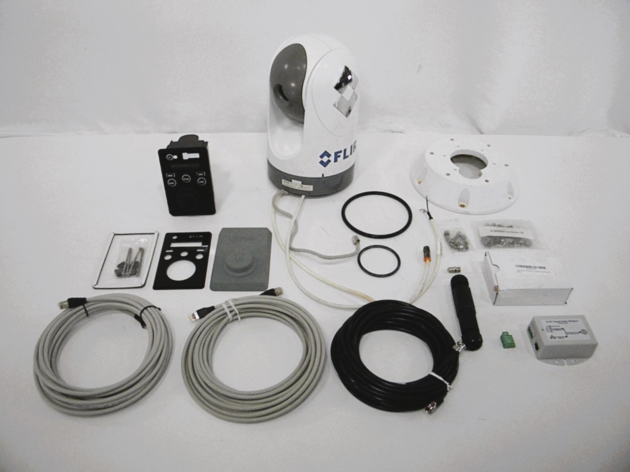 M-625XPJCU-1 – bezel and suncoverRG6 Coaxial cable – 30 feet, has RCA adapter on one endCAT6 Ethernet cable – Type B straight, 30 feet in length